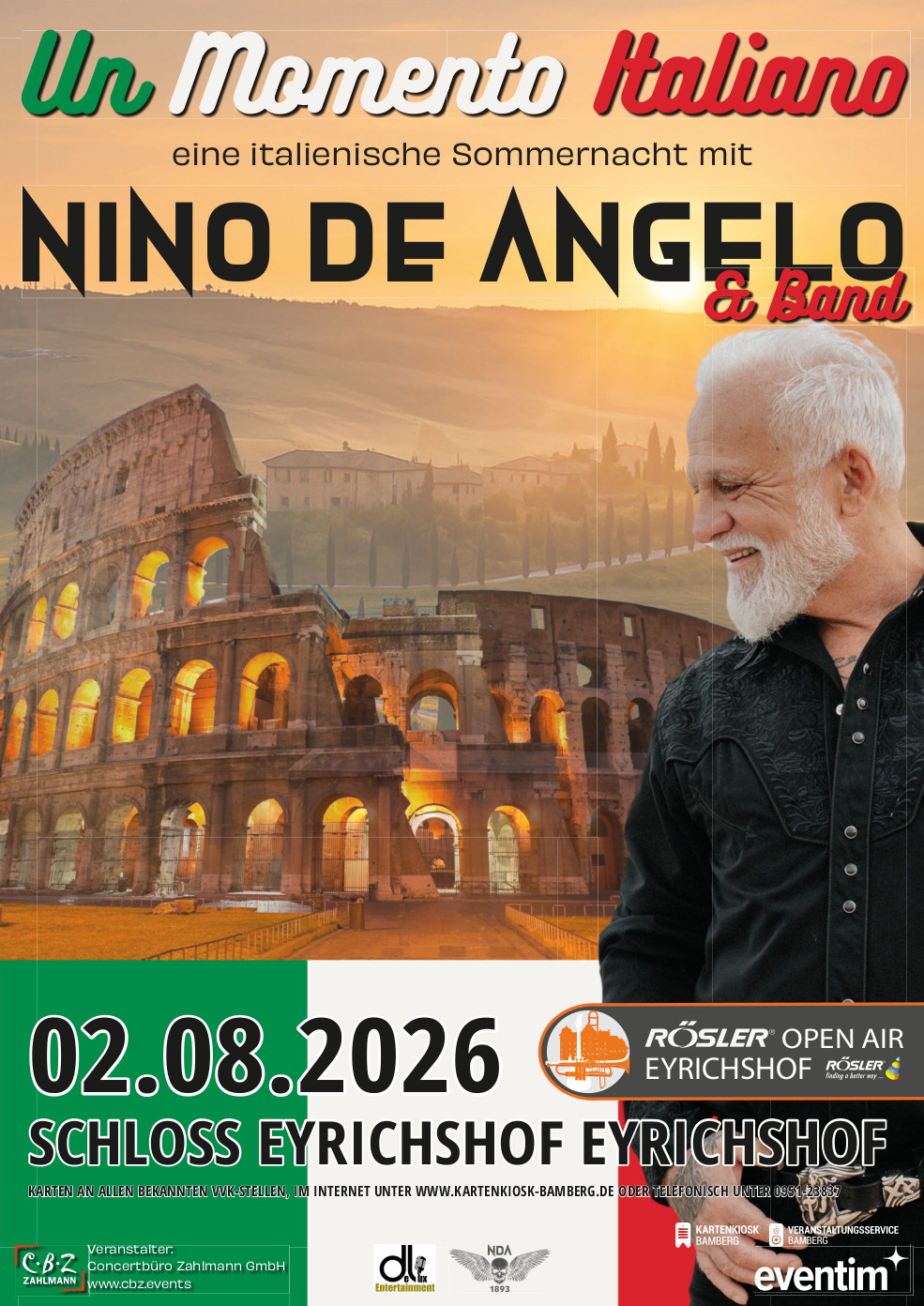 Nino de Angelo kündigt für den Sommer 2026 eine ausgedehnte Open Air Tour auf den schönsten Freilichtbühnen Deutschlands an. Mit sommerlichen Nächten unter freiem Himmel erwarten die Besucher emotionale Momente in einer einzigartigen Live-Atmosphäre. Im Zentrum der Open Airs steht dabei das Album „Un Momento Italiano“ von 2004. Seine Fans dürfen sich auf neue Live-Interpretationen aus diesem Album freuen. Den Titeltrack „Tornerò“ kennen viele bereits als Klassiker aus Nino bisherigen Konzerten und als Duett mit Giovanni aus der Giovanni Zarrella Show. Ein italienischer Moment nach dem anderen, der das Herz höherschlagen lässt. Natürlich wird Nino de Angelo auch seine legendären Songs performen – von „Jenseits bis Eden“ bis zu aktuellen Stücken. Ein Set, das Vergangenheit und Gegenwart musikalisch verbindet.