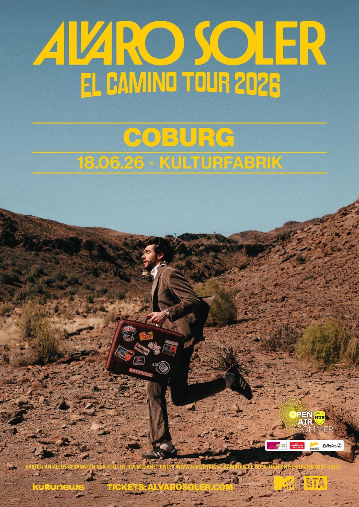 Mitreißende Rhythmen, gefühlvolle Texte und Lebensfreude pur – Alvaro Soler kündigt seine mit Spannung erwartete El Camino Tour 2026 an! Der international gefeierte Singer-Songwriter Alvaro Soler wird ab April 2026 wieder live auf den Bühnen Europas stehen und mit seiner einzigartigen Mischung aus Pop, Latin und spanischen Flairs ein Publikum begeistern. Die „El Camino Tour 2026“ führt ihn durch zahlreiche Länder–darunter Deutschland, die Niederlande, Belgien, die Schweiz, Polen, die Slowakei, Luxemburg, Österreich und Tschechien. Nun wurde die Tour um weitere Sommertermine ergänzt – mit stimmungsvollen Open-Air-Konzerten auf besonderen Bühnen unter freiem Himmel.