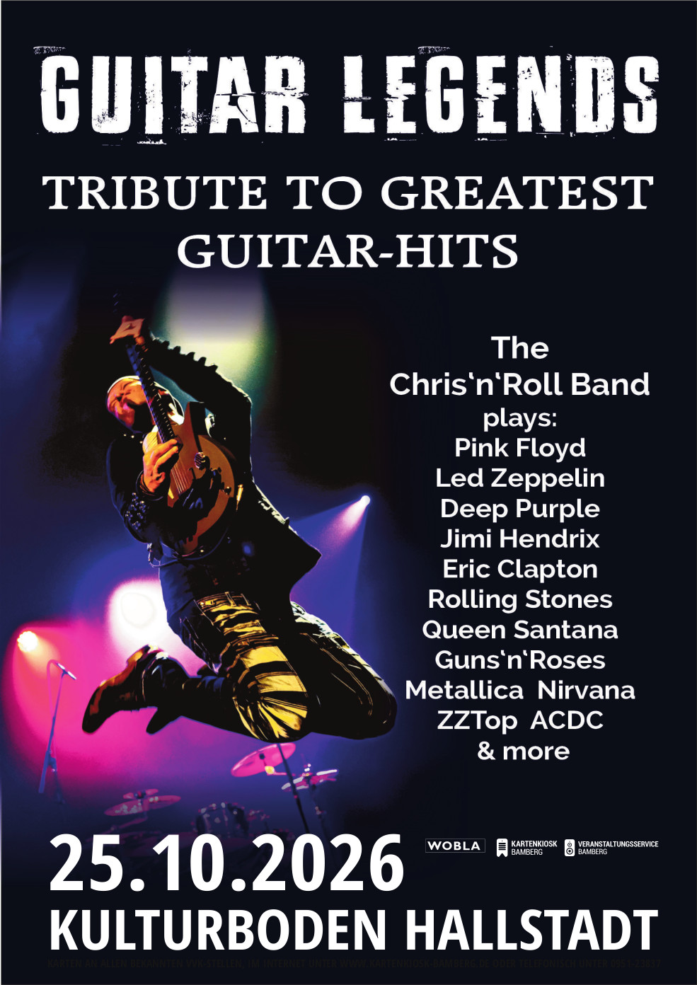 Diese Guitar-Hero-Show präsentiert unvergessliche Gitarren-Hits in einer spektakulären Show. Die große Emotion und unwiderstehliche Energie der E-Gitarre – ein Leckerbissen für alle Liebhaber der großen Songs der Rockgeschichte. Die Show ist eine tiefe Verbeugung vor Kult-Gitarristen, die mit ihren Songs Geschichte geschrieben haben: Jimi Hendrix, David Gilmour (Pink Floyd), Keith Richards (The Rolling Stones), Billy Gibbons (ZZ Top), Carlos Santana, Brian May (Queen), Jimmy Page (Led Zeppelin), Eric Clapton, Angus Young (AC/DC), Steve Lukather (Toto) & viele weitere „Gitarren-Helden“.
