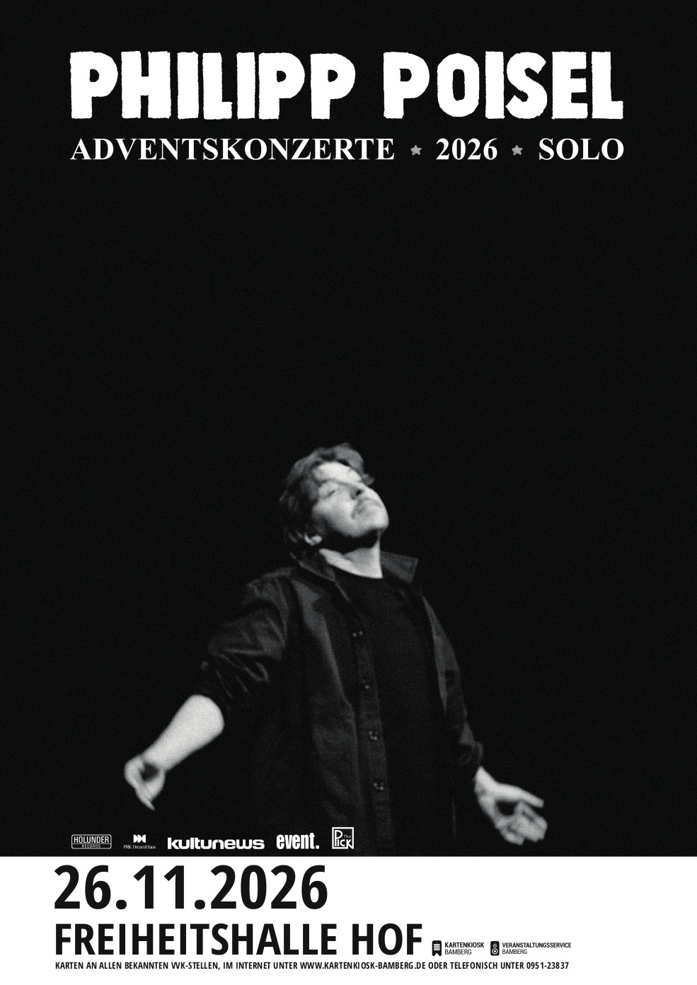 Was einst als kleine Idee und Geheimtipp mit wenigen Konzerten begann, hat sich längst zu einem festen Bestandteil der Vorweihnachtszeit entwickelt. 32 ausverkaufte Abende im Jahr 2025 zeugen von der besonderen Anziehungskraft dieser Konzertreihe. Auch 2026 versprechen Poisel Konzerte, die zwar als „solo“ plakatiert sind, aber immer durch einen von Philipps versierten Bandkollegen mit einem ganz eigenen Touch an Spielkultur bereichert werden, Gemütlichkeit, Heiterkeit und einen Hauch Magie des Unaufgeregten. ein kleiner Moment an dem die Welt draußen stillstehen kann. In atemberaubenden Kirchen, gemütlichen Kinos und Theatern mit nostalgischem Charme kommen Menschen zusammen, um gemeinsam mit Philipp Poisel einen besonderen Abend zu erleben.