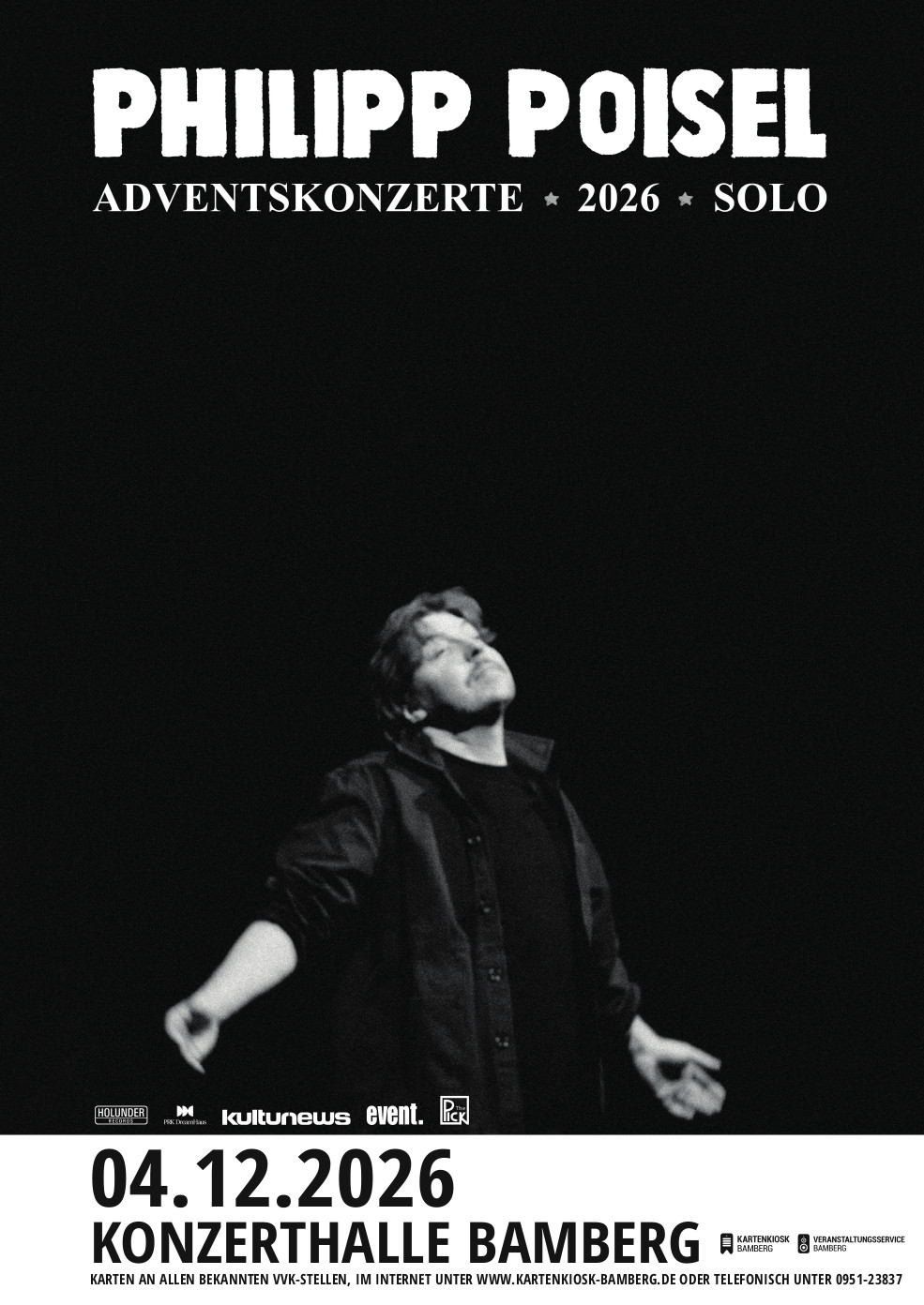 Was einst als kleine Idee und Geheimtipp mit wenigen Konzerten begann, hat sich längst zu einem festen Bestandteil der Vorweihnachtszeit entwickelt. 32 ausverkaufte Abende im Jahr 2025 zeugen von der besonderen Anziehungskraft dieser Konzertreihe. Auch 2026 versprechen Poisel Konzerte, die zwar als „solo“ plakatiert sind, aber immer durch einen von Philipps versierten Bandkollegen mit einem ganz eigenen Touch an Spielkultur bereichert werden, Gemütlichkeit, Heiterkeit und einen Hauch Magie des Unaufgeregten. ein kleiner Moment an dem die Welt draußen stillstehen kann. In atemberaubenden Kirchen, gemütlichen Kinos und Theatern mit nostalgischem Charme kommen Menschen zusammen, um gemeinsam mit Philipp Poisel einen besonderen Abend zu erleben.