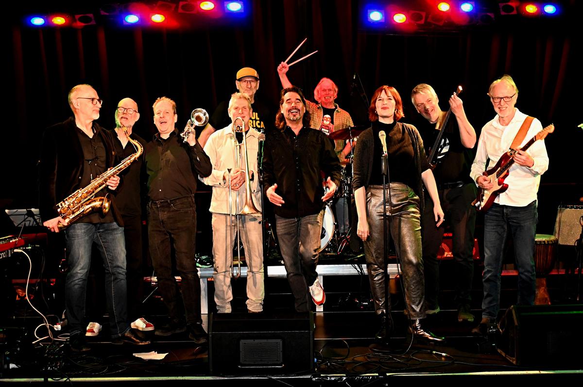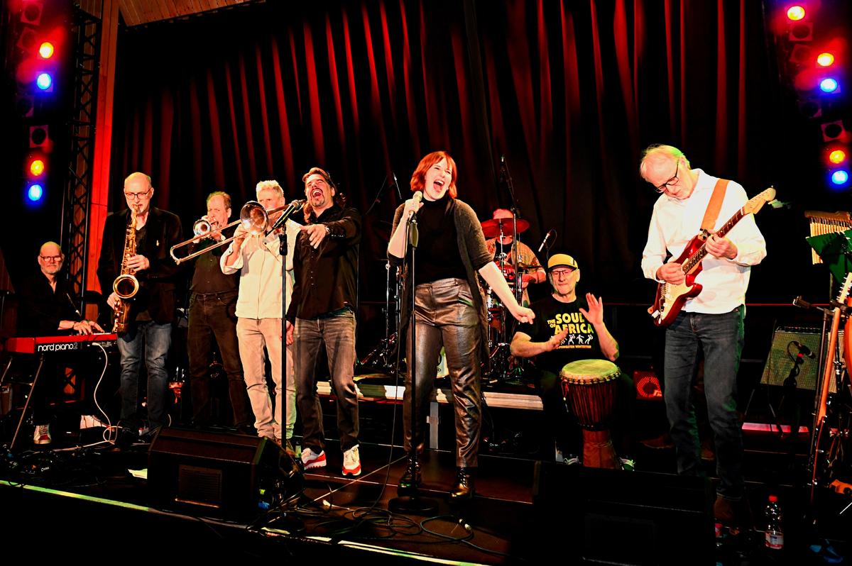 Schweinsohr Selection (schon lange bekannt unter SOS) ist eine 10-köpfige Band aus Bamberg. Gegründet wurde die Truppe im Jahr 1978, vor 48 (!) Jahren. Die 9 Jungs und die 1 Frau lassen es bei ihren Auftritten richtig krachen und bringen Soul-Songs und Funk-Nummern live und handgemacht bereits zum sechsten mal auf die Kulturboden-Bühne. Etienne Reinders und Sophia Weinberger animieren die Zuhörer von der ersten zum Tanzen. Neben Steph Hänisch am Schlagzeug sorgen Harald Hauck (Keys), Norbert Schramm (Gitarre), Christian Zürner (Bass) und Werner Silzer (Percussion) ebenfalls dafür, dass der Groove in die Beine geht. Dazu gehört natürlich auch die Bläser-Section mit Sebastian Strempel (Trompete), Tom Brüderer (Posaune) und Stefan Greisinger (Saxofon).