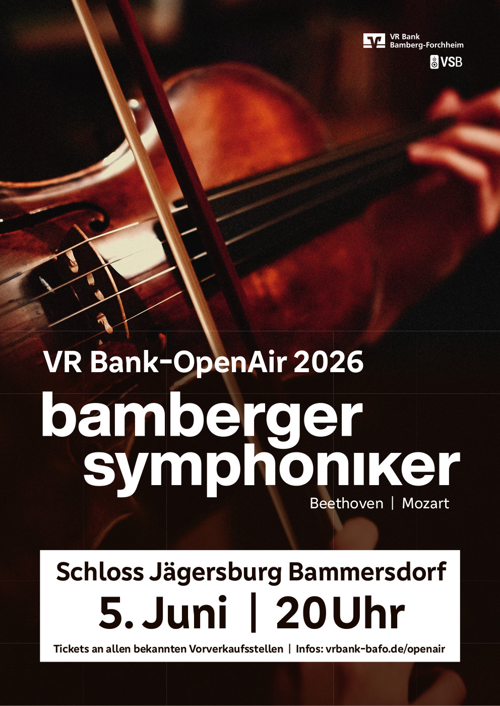 Ein musikalisches Highlight von außergewöhnlichem Rang erwartet die Region Bamberg-Forchheim im kommenden Sommer: Die Bamberger Symphoniker werden beim VR Bank-OpenAir 2026 auf Schloss Jägersburg in Eggolsheim auftreten. Damit ist es der VR Bank BambergForchheim gelungen, eines der international renommiertesten Orchester für ein besonderes Open-Air-Konzert in historischer Kulisse zu gewinnen.