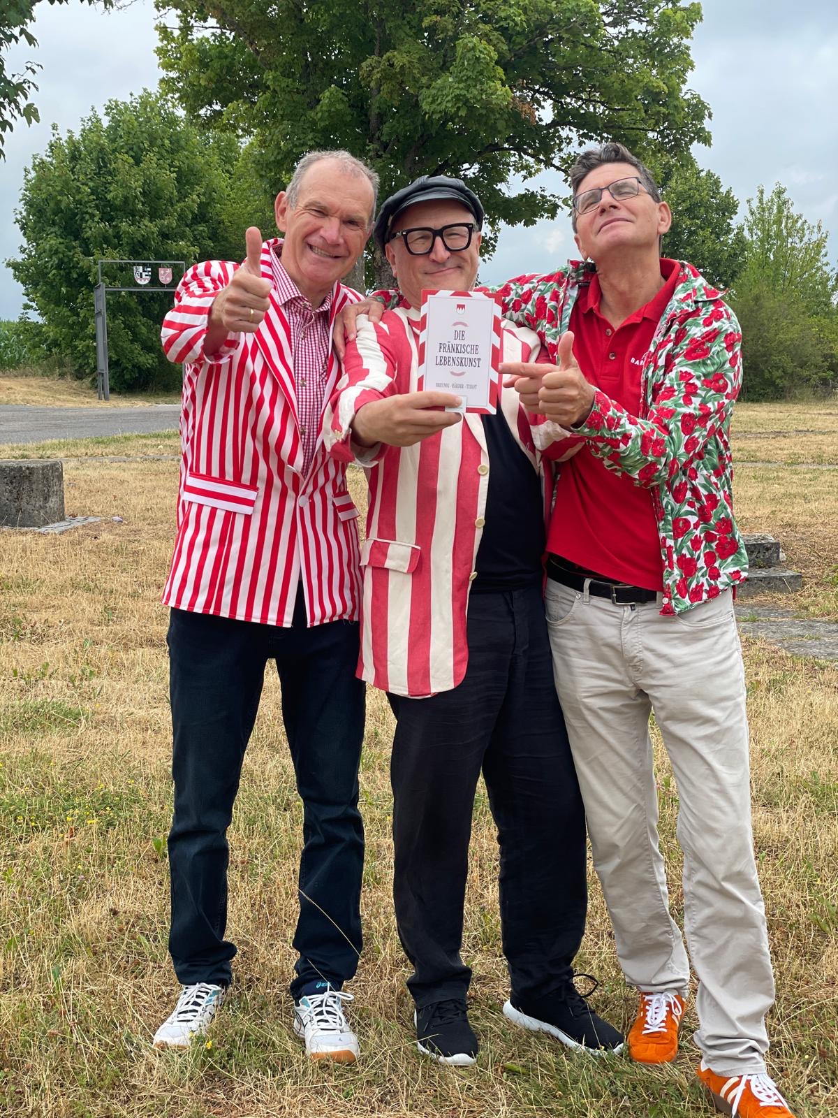 Mäc Härder ist fränkischer Kabarettist, Jongleur und Autor. Im Frühjahr 2011 wurde er mit dem „Fränkischen Kabarettpreis“ (Sonderpreis) geehrt, im November 2011 bekam er vom Bundesministerium für Wirtschaft und Technologie die Auszeichnung zum „Kultur- und Kreativpiloten Deutschland“ und er war „Künstler des Monats“ im Oktober 2013 in der Metropolregion Nürnberg. Oliver Tissot ist promovierter Soziologe, Lachverständiger, vielfacher Kreativpreisträger, langjähriger Mitwirkender bei „Fastnacht in Franken“ sowie Ideengeber und Macher eines „Narr-Erholungsweges“ und eines „WitzeWanderWegs“ in Franken. Fredi Breunig aus dem Landkreis Rhön-Grabfeld in Unterfranken ist Kabarettist, Glossist und Mundart-Autor. Er ist Preisträger des Frankenwürfels 2013, des Dialektpreises Bayern 2023 und Träger des Bayerischen Verdienstordens.